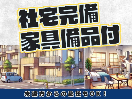 昇給制度/社保完備/労災保険/厚生年金/制服貸与/研修制度/車通勤OK/交通費支給/資格取得支援あり/寮・社宅あり/送迎制度あり/日払い・週払いOK/有給休暇/売店・休憩室・更衣室あり